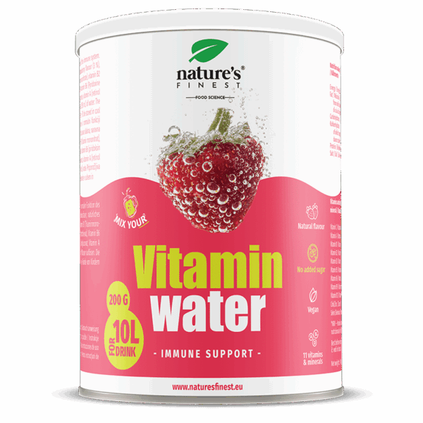 L’eau vitaminée Immune support est une boisson rafraîchissante à la saveur de fraise.