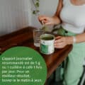 La dose quotidienne recommandée est de 5 g (ou 1 cuillère à café 1x par jour). Pour de meilleurs résultats, buvez-le le matin à jeun. Pour un meilleur goût, vous pouvez le mélanger dans du jus de citron ou d’orange fraîchement pressé, ou dans de l’eau.